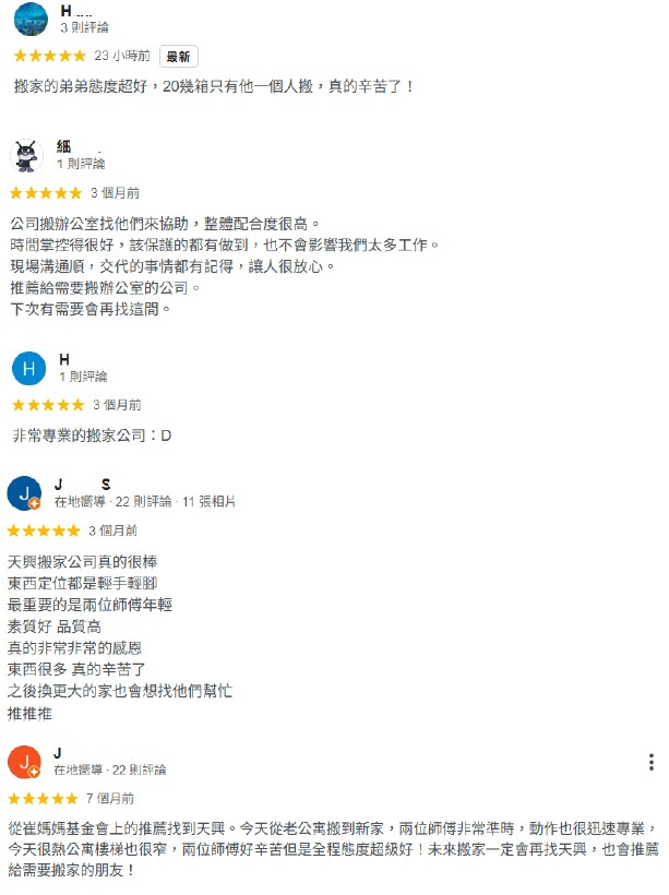 天興精緻搬家公司 在何存毅 先生 專業領導與全體精英的合作默契下,服務過無數大大小小的搬運趟次,舉凡:大型企業搬遷、廠房搬遷、家庭及個人搬遷、弱勢居住搬遷、特殊重物搬遷和廢棄物處理……等等,都讓 天興精緻搬家公司 的服務足跡,踏遍了全台灣的每個角落。